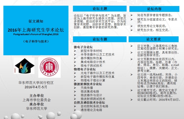 【培养】2016年上海市电子科学与技术研究生学术论坛征文通知