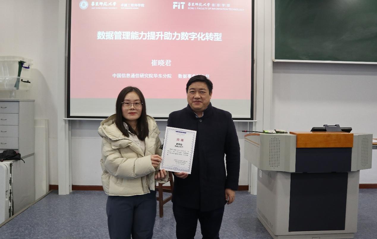 王长波教授为演讲嘉宾崔晓君颁发致谢函