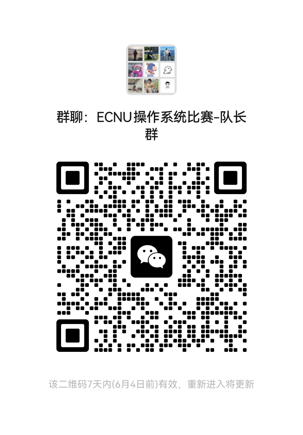 2.交流咨询:请队长加入“中国研究生操作系统大赛校内赛”微信群(账号:见二维码),跟进大赛流程、竞赛指导以及交流咨询。
