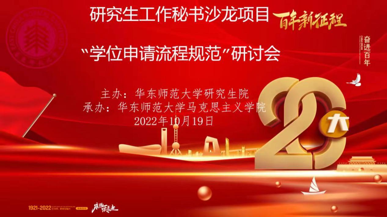 为强化研究生学术规范意识,优化研究生学位申请流程,提高我校学位授予工作的质量和效率,马克思主义学院于2022年10月19日下午线上召开了“研究生学位申请流程规范研讨会”,出席本次活动的嘉宾有马克思主义学院副院长速继明教授、研究生院学位办张立老师、研究生院学位办向春平老师、复旦大学马克思主义学院研究生工作秘书蔡春老师以及我校部分兄弟院系研究生工作秘书。本次活动由马克思主义学院研究生工作秘书李明照主持。